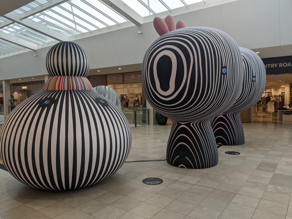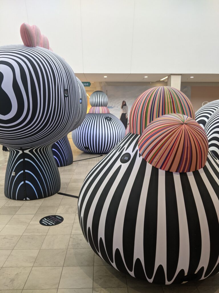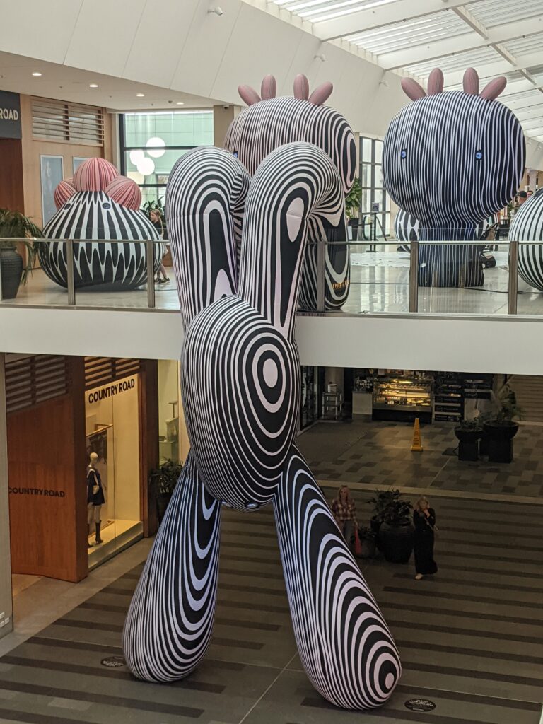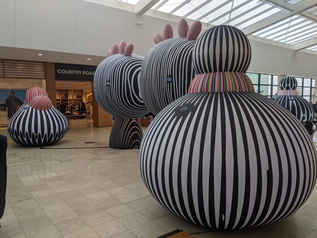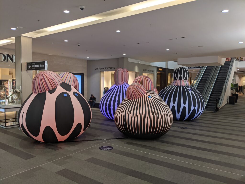 Some of the 16 inflatables by Eness on show in May 2025 at the Claremont Quarter, Perth, WA.